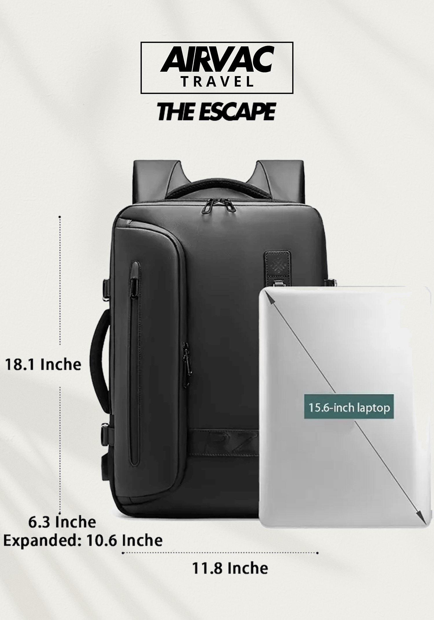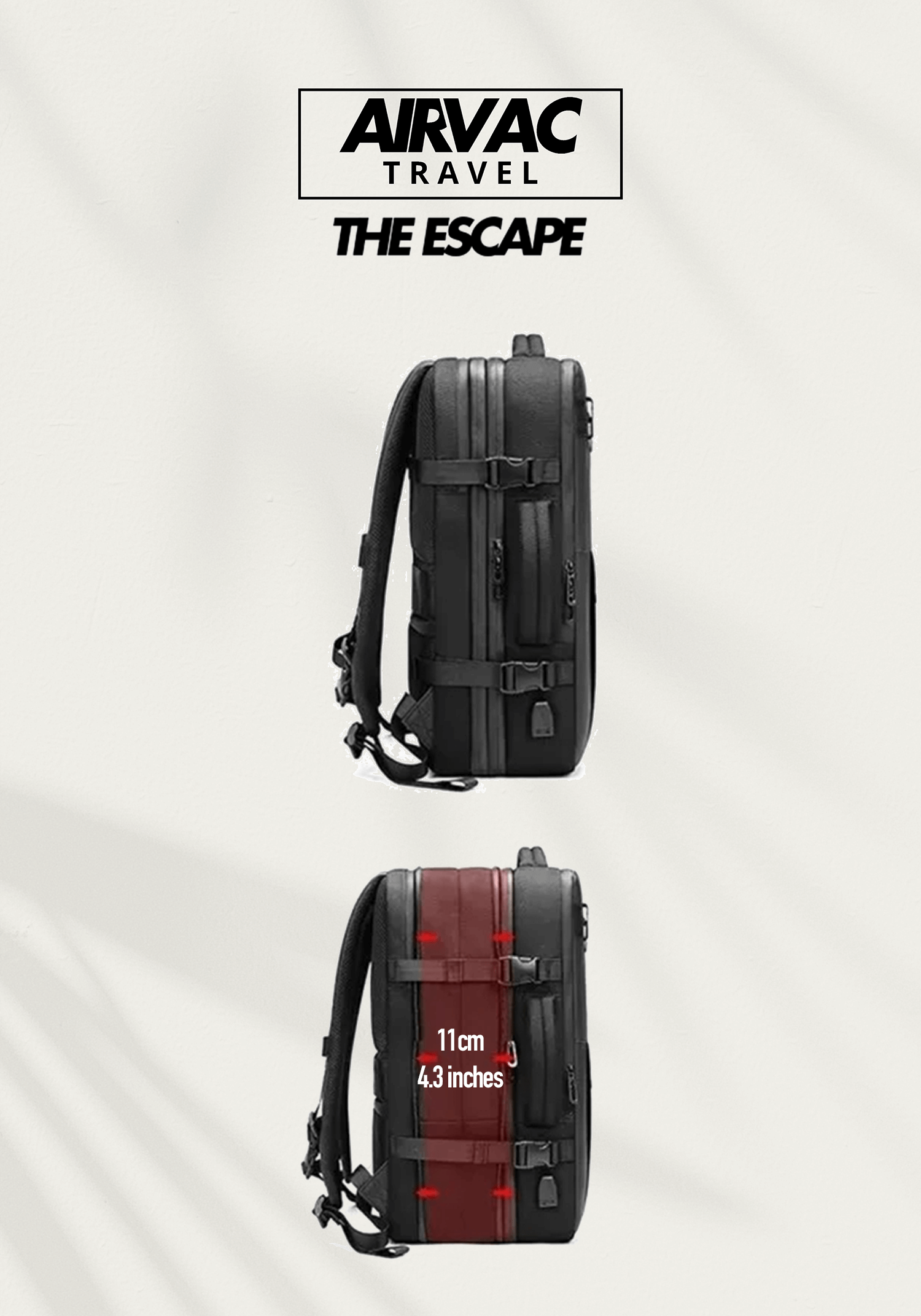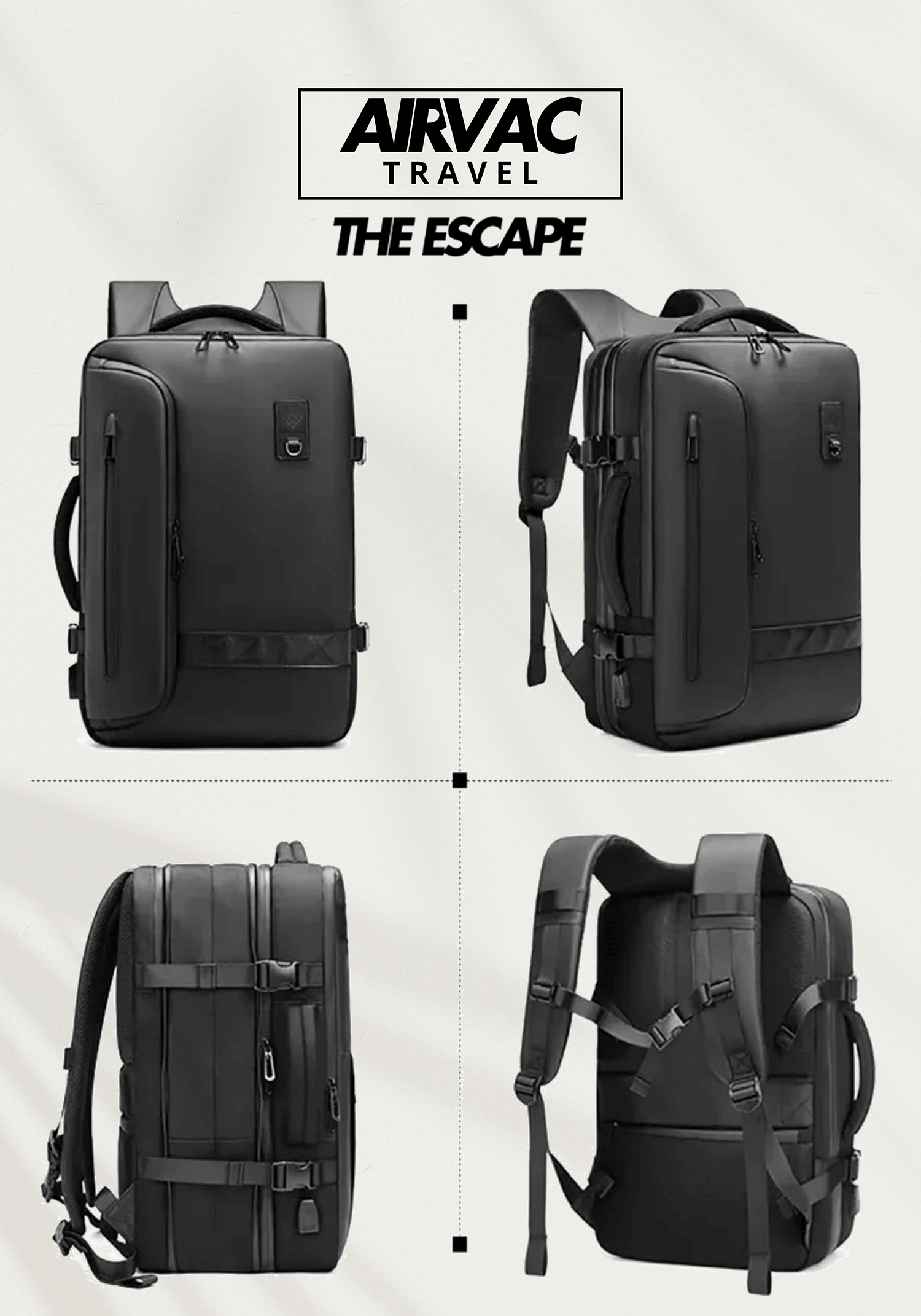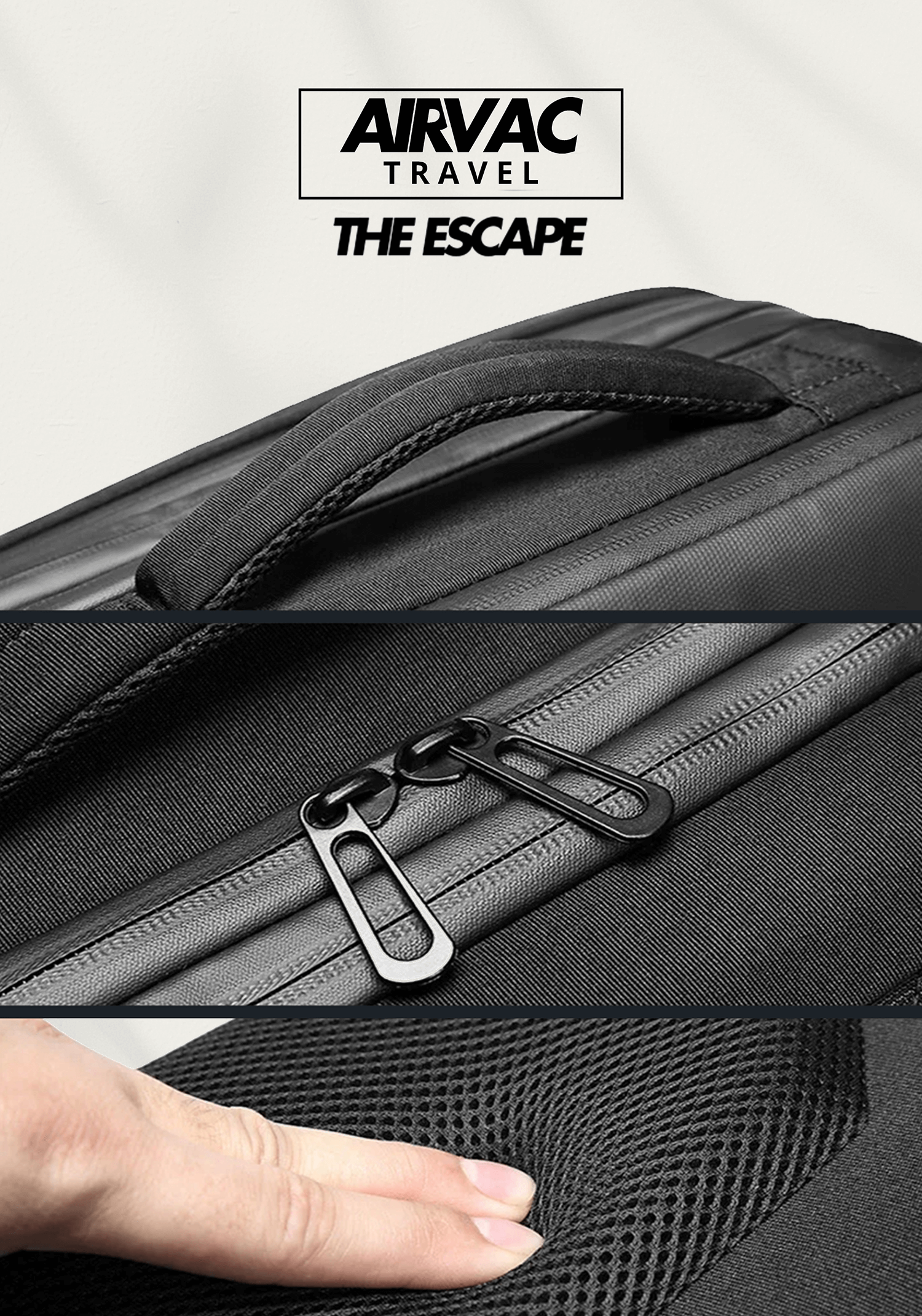 Elevate your travel experience with THE ESCAPE by AirVac™. Combining sleek design with innovative air vacuum technology, THE ESCAPE ensures you pack smarter and travel lighter. Ideal for both business trips and leisurely escapes, this model fits perfectly in overhead compartments and offers unparalleled convenience.